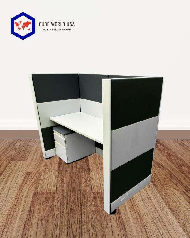 Description We have this Herman Miller Ethospace station that comes in a standard size of 60" Wide with power on the spline. The aisle panels are 30" deep and the height is 54" tall. Overall the cubicle is 60"x30"x54"inT. We can also make this cubicle in 24" or 36" deep. $799 cluster $899 straight line For Pedestal add $99 For Height Adjustable Base add $399 For glass add $99 per tile