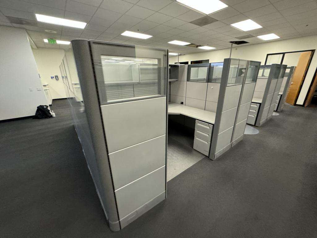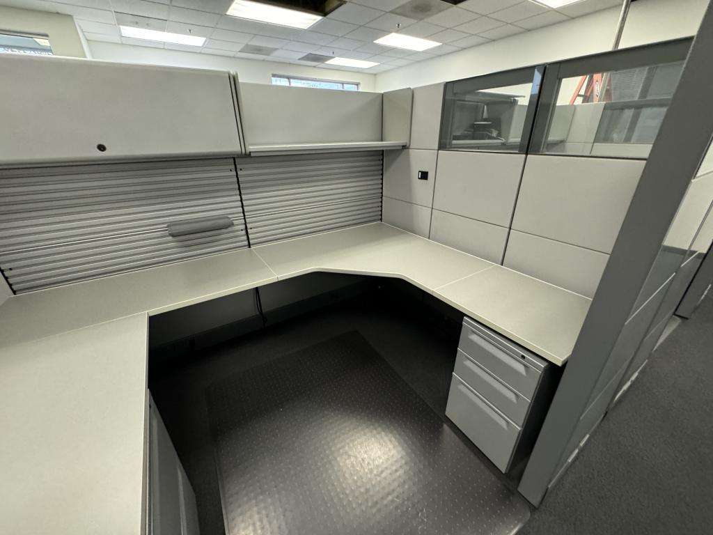 Description We have these Herman Miller Ethospace stations that are 6’x8’x70” in excellent condition with grey fabric and grey trim. Each station comes with a glass wing panel and a bbf pedestal. Power down the spline (base feeds additional) $849 each cluster $1049 each straight run Add $75 per overhead shelf We can make any size you need just ask for a quote or send us your floor plan.
