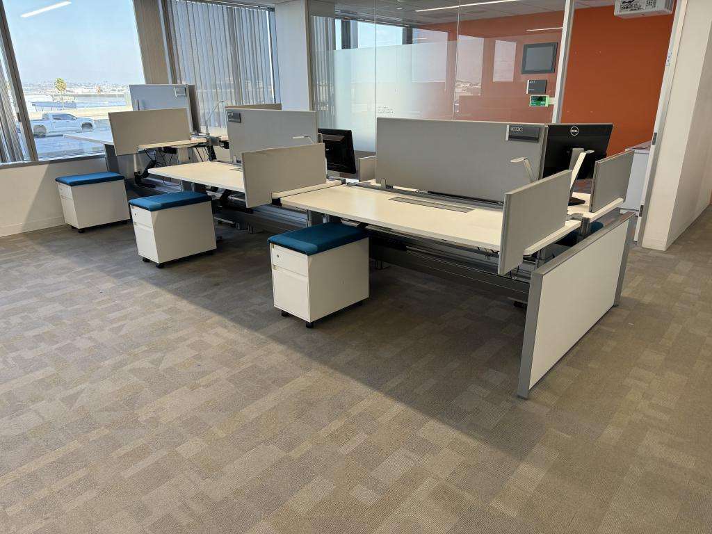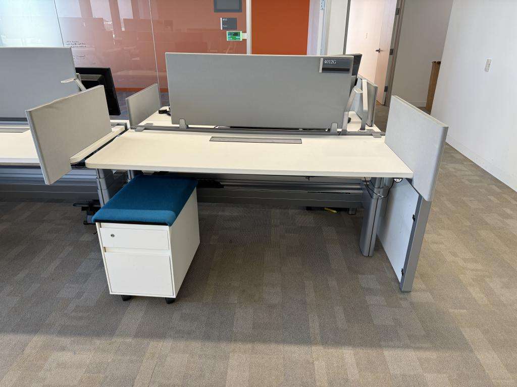 Description We have these Steelcase Benching Stations that are fully loaded and in great condition. They come with a mobile pedestal (based on stock), power down the spline (base feed $149 each), lamp light included. Each station has an acoustical divider in the center and an acoustical divider to the left of the personnel creating a private benching. These stations are fully loaded and pre-made with wire management built in.
