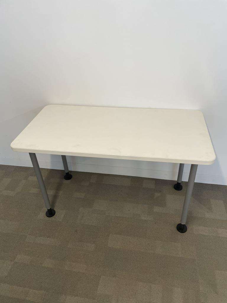 We have this Steelcase 48"x24"" white table top with steel legs that is in excellent condition. The top is white (rectilinear or rounded edges based on stock). The legs are made of steel (legs style based on stock at time of purchase)