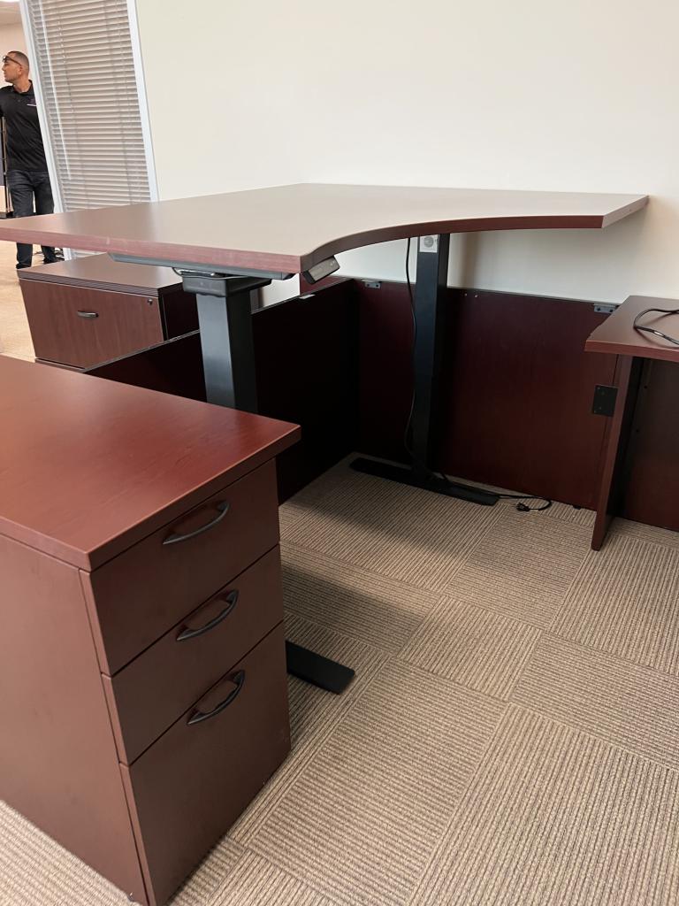 Description We have these Link Desk Frame 2 Adjustable Height desks with black bases that are just a couple years old and installed right before Covid and hardly used. These sit to stand desks are Bluetooth integrated to where you can control the desk with your phone.