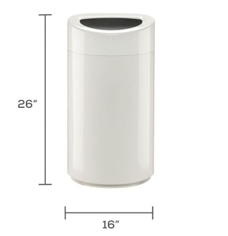 Safco Open Top Oval Waste Receptacle, 14 gal, Steel, White
