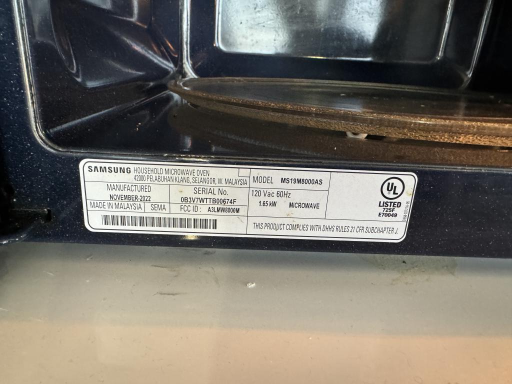 Description We have this Samsung Microwave Model#ms19m8000as in excellent working condition. Get this item pre owned for a fraction of the cost of buying it new in great condition.