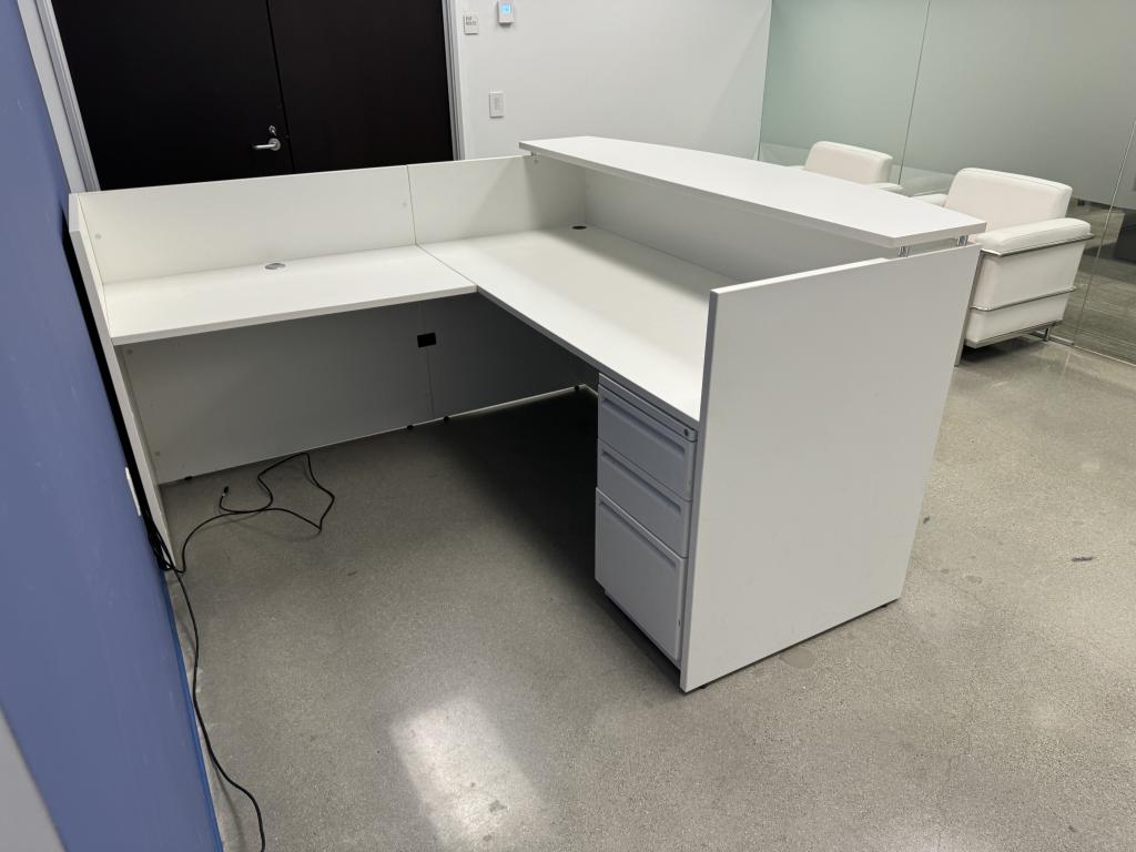 We have this white L-shape OFS reception desk. It would be perfect for any office space and front office.