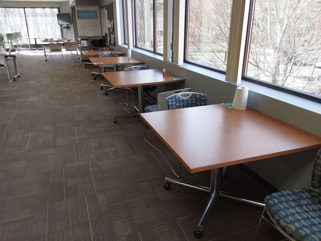 Collection of cafe furniture located in Acton, MA. Rectangle tables (9) Square tables (6) Hi Top Tables (3) SitOnIt Sled based café chairs (55) Green Stools (12)