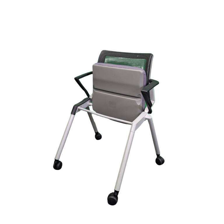We have these OFS nesting chairs in good condition that have a mesh back and a charcoal fabric seat.