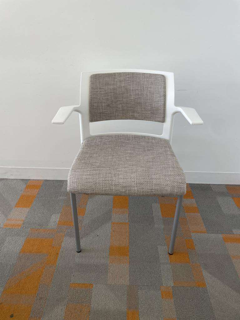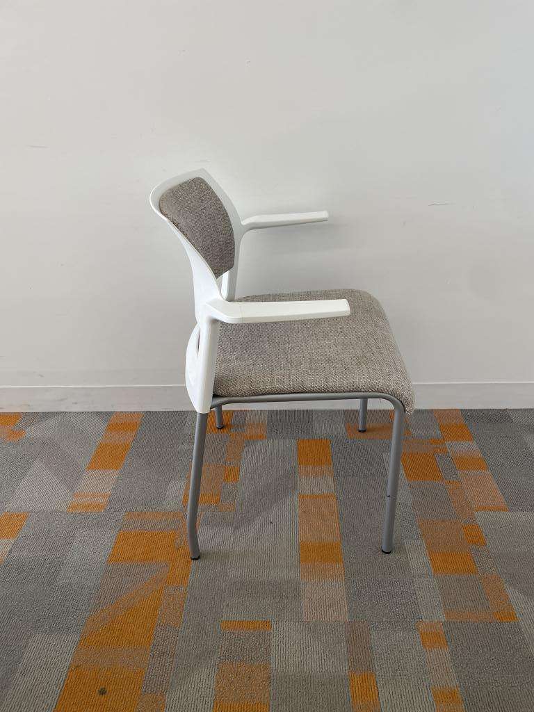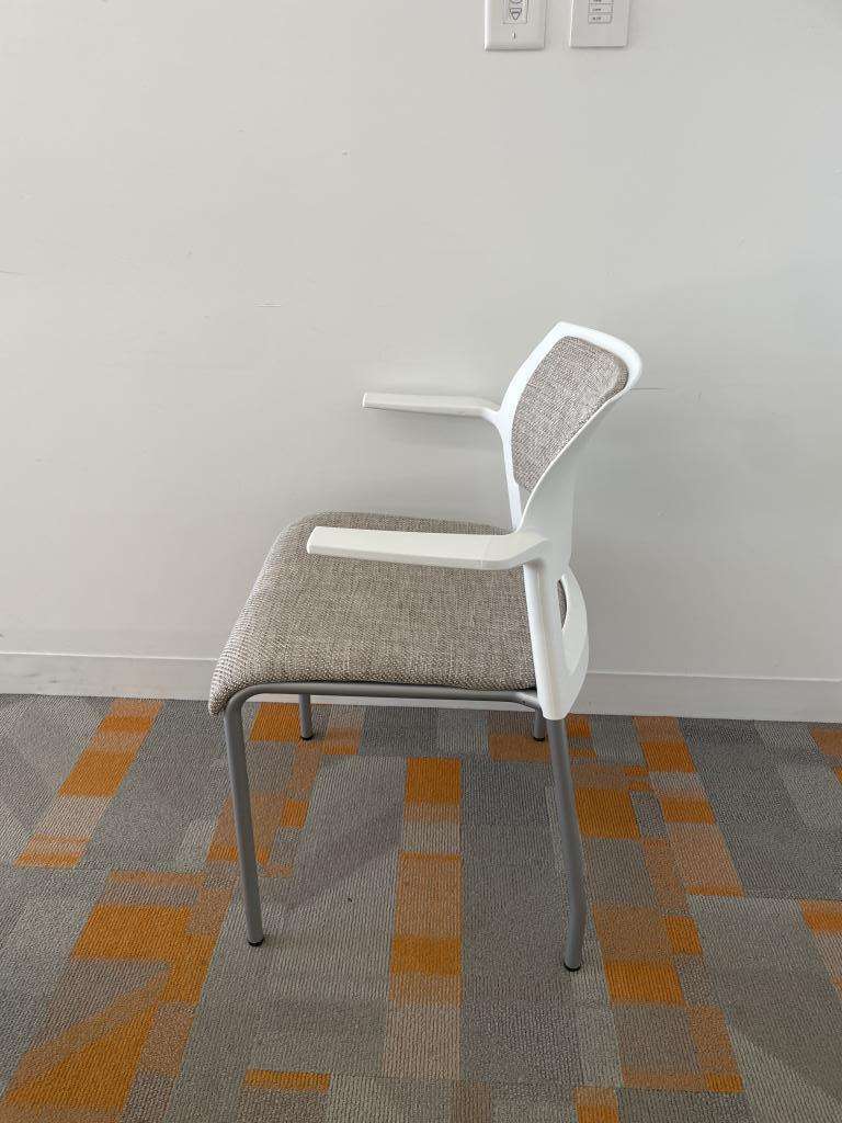 We have these Steelcase Cobi Stacking chairs that are in excellent condition with white frame and neutral fabric seat. These chairs can stack up to 5 high and are lightweight yet durrable.