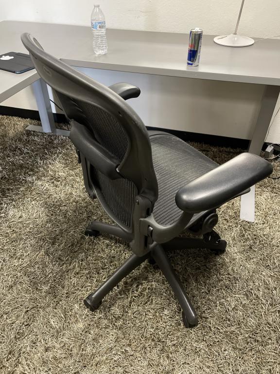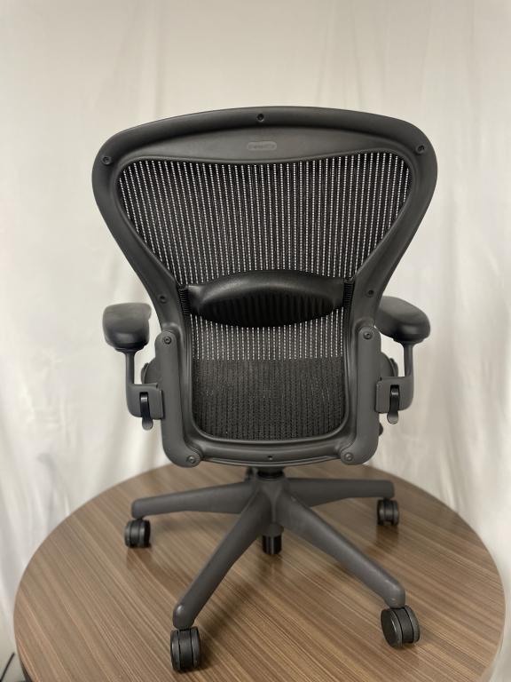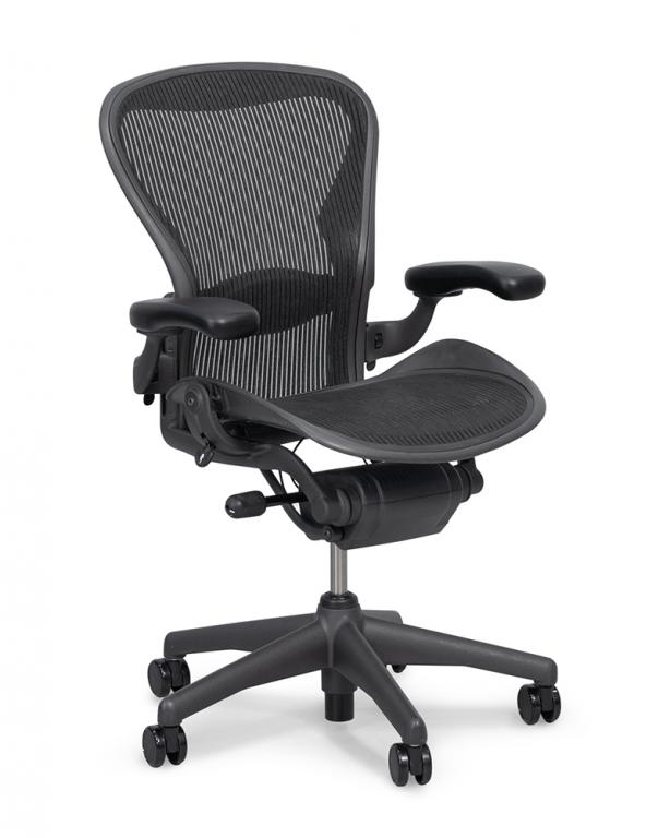 Description We have the Herman Miller Aeron chair available and in stock. The Aeron's that we stock are loaded with tilt, pneumatic cylinder, adjustable arms, and lumbar support.