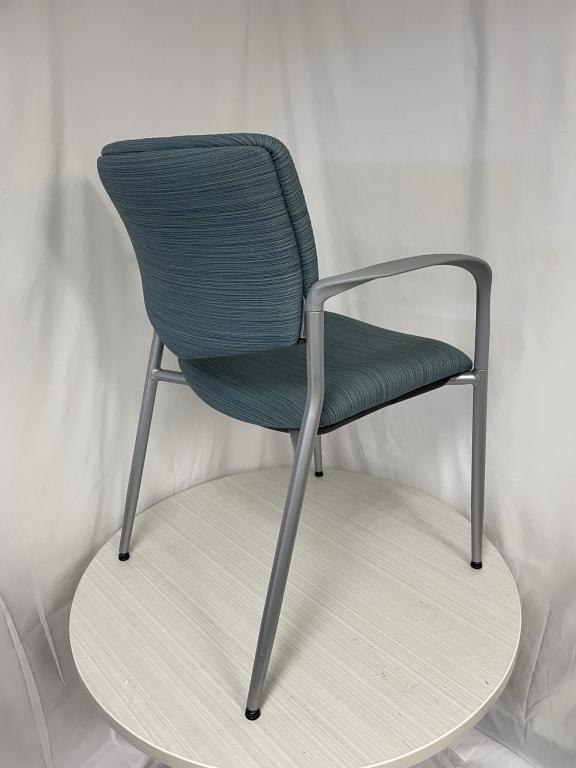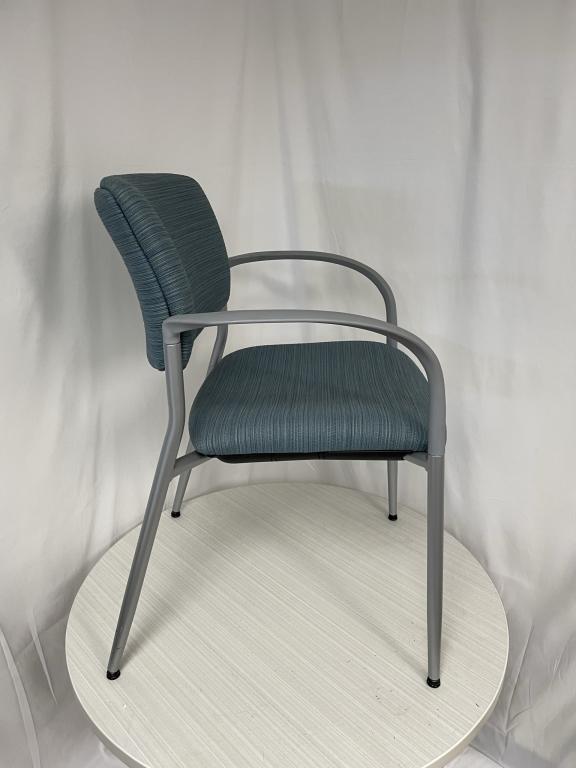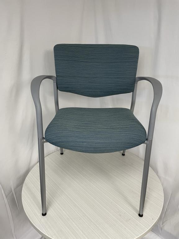 We have these very nice Trendway guest chairs that come in a sky clue fabric. We have 8 chairs total. 3 are with silver arms 1 is with black legs and no arms (same fabric) See photos attached