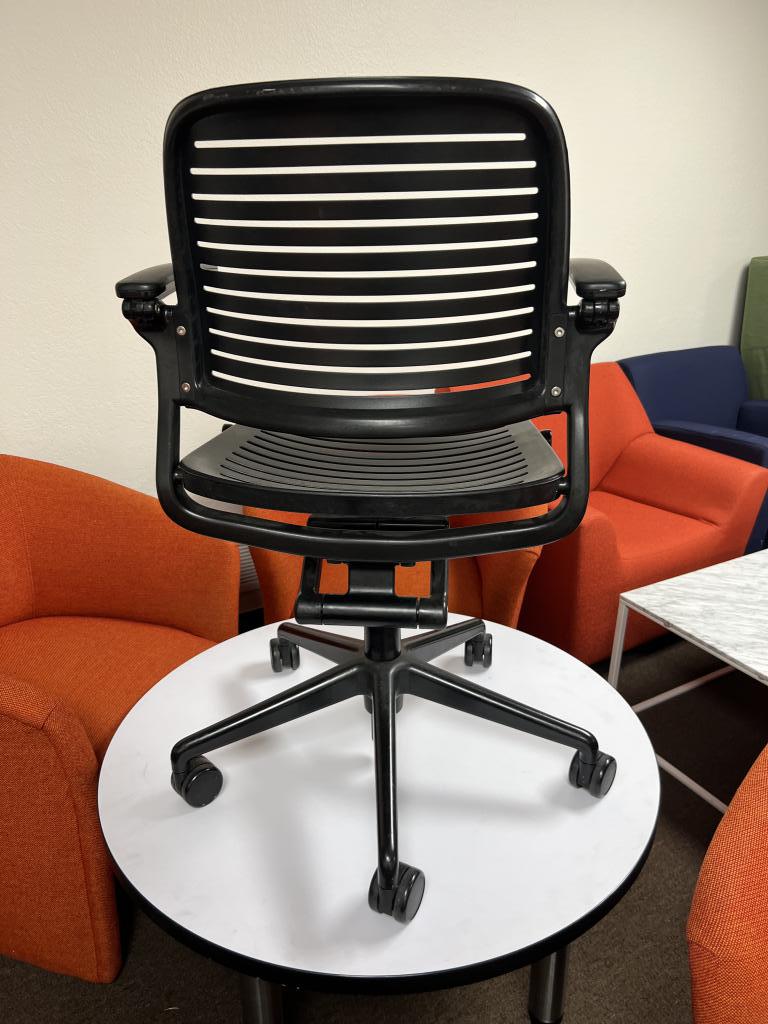 Description This is the Steelcase Cachet black fully ergonomic chair.
