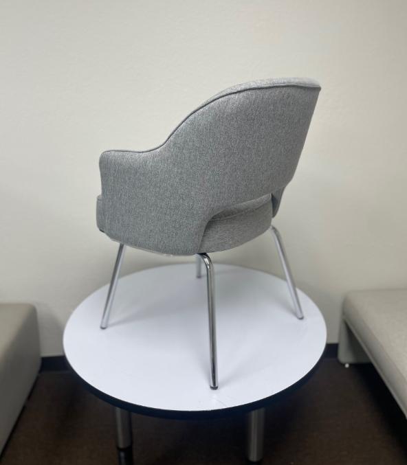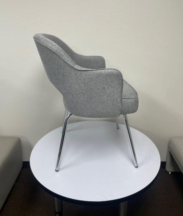 Boss Granite Linen Guest Chair -22.5"W x 24.5"D x 32"H -Upholstered in granite linen. -4 tubular chrome chair base. -Fixed arm design and breathable, semi-open back for comfort.