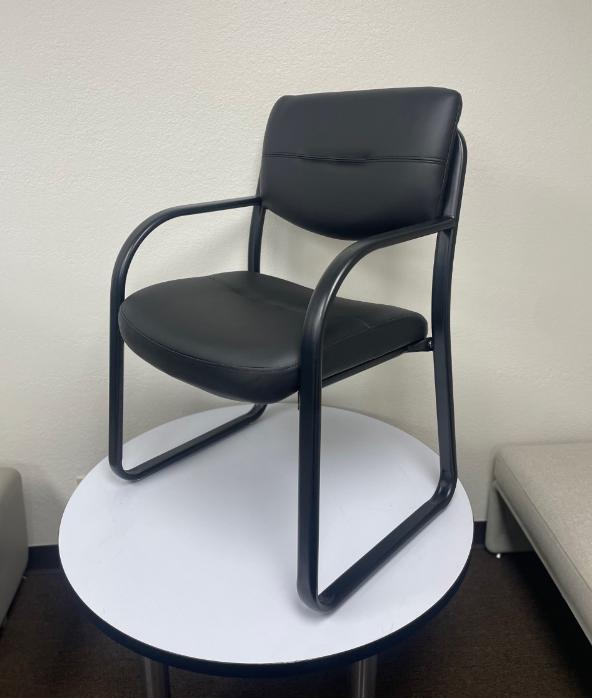 Description Boss Leather Sled Base Side Chair W/ Arms