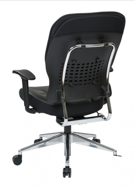 • Thick padded contour black eco leather seat and back with built-in lumbar support