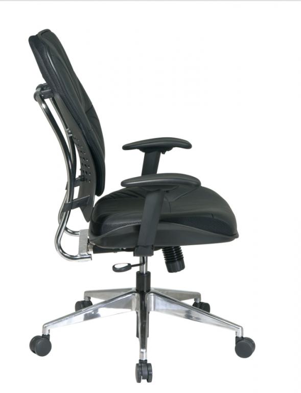 • Heavy duty angled polished aluminum finish base with oversized dual wheel carpet casters