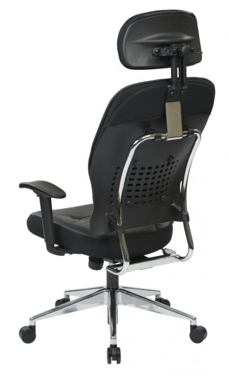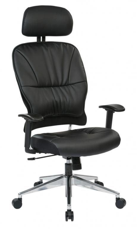 Description We have this black Office Star Bonded Leather Seat & Back Executive Chair with an adjustable headrest, adjustable arms and polished aluminum finish base that is 29.25” W x 29.5” D x 47.5-55.75” H.