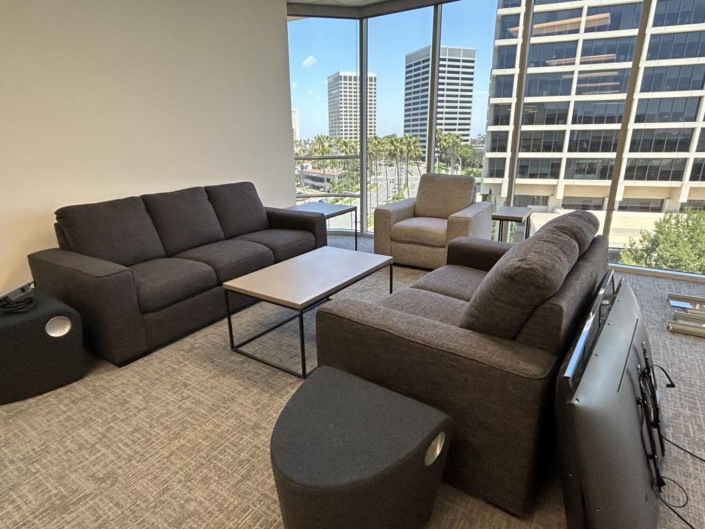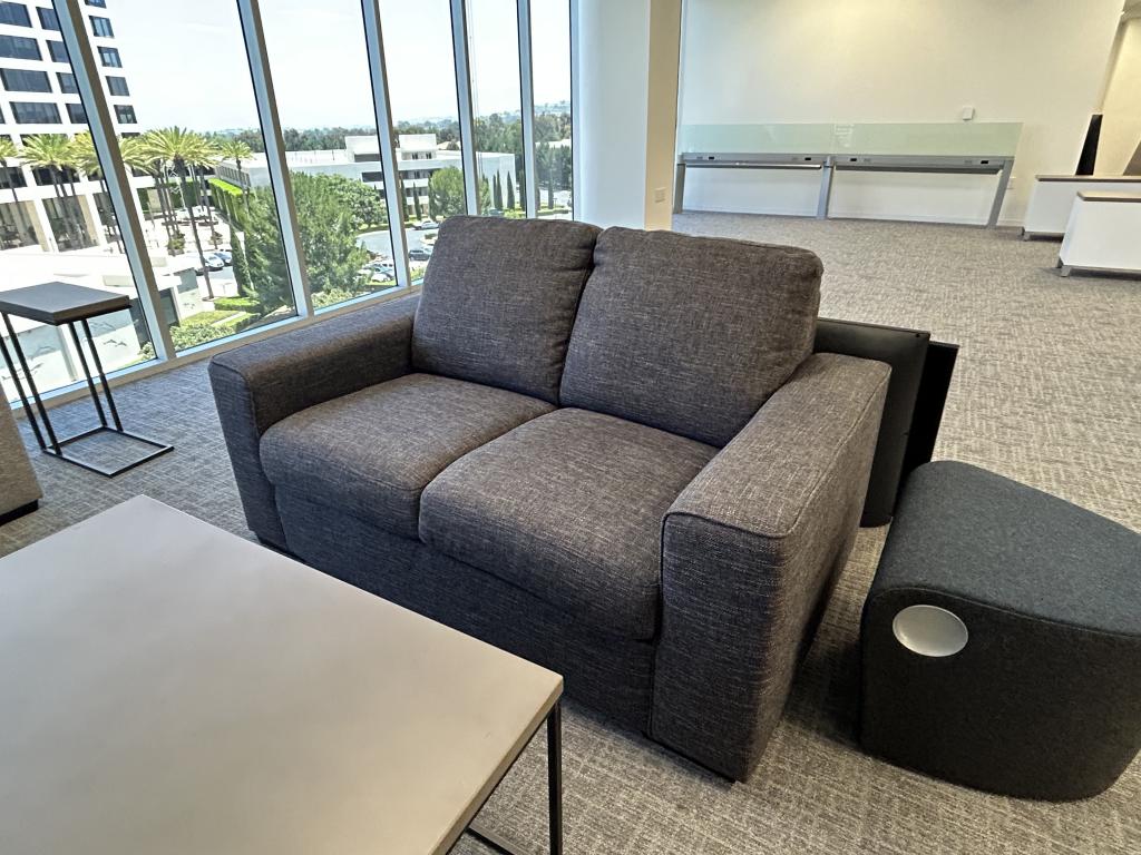 We have this Living Spaces love seat sofa in medium grey. Bought during Covid and our client never came back to the office therefore it is in excellent condition.