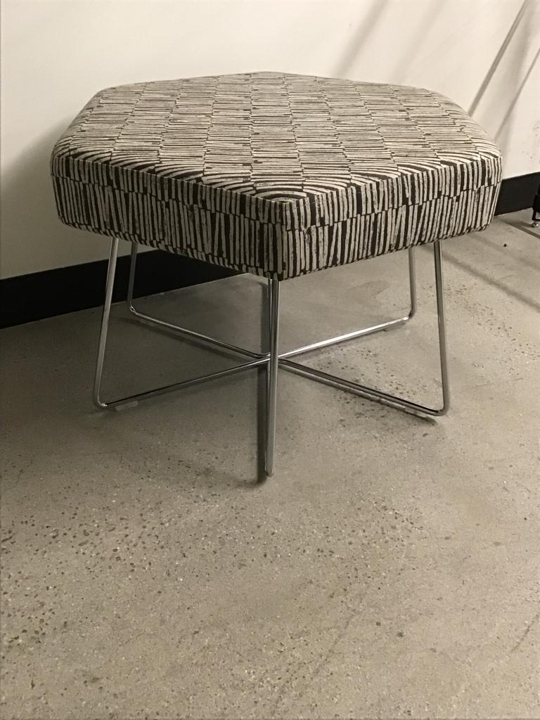 We have this Keilhauer Bone black and white hexagon ottoman with a wire base. These are a perfect sitting stool or place to rest up your feet.