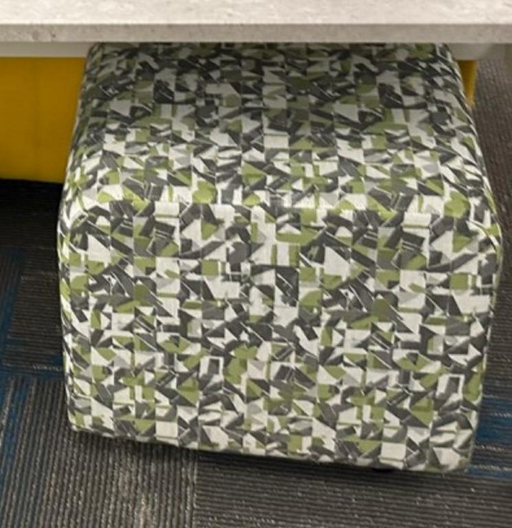 We have these OFS Green Patterned Ottoman seats on casters. These are perfect for a bench style seating or open environment.