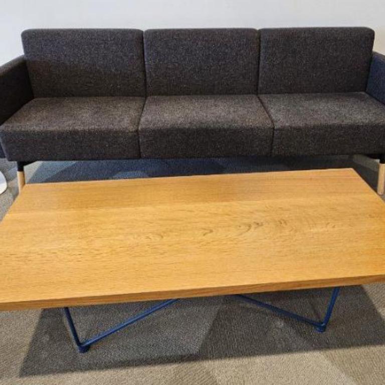 We have this dark grey Hightower slanted wood leg authentic commercial sofa in excellent condition.