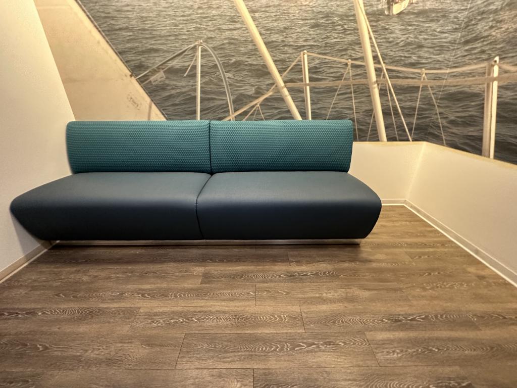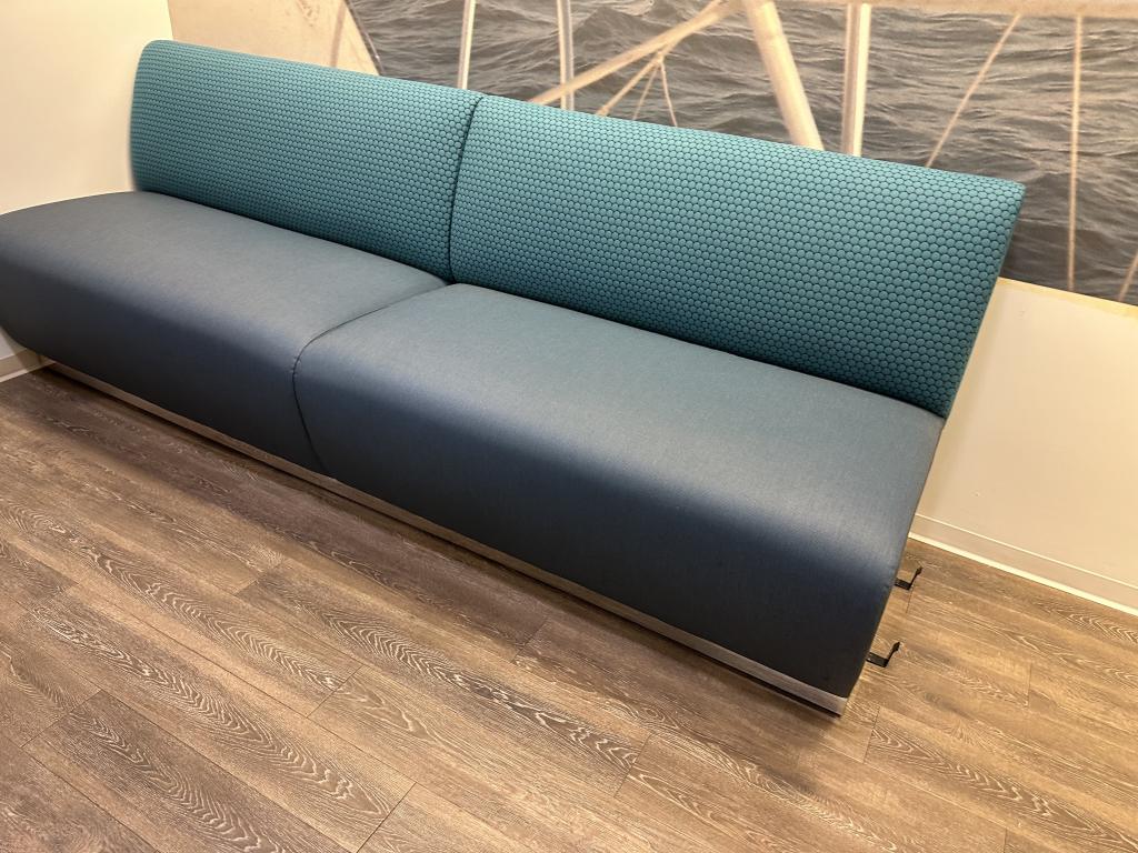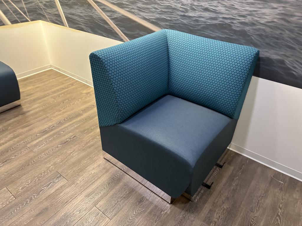 Description We have this Teal & Blue and Chrome Gunlocke Modular Banquet seating.