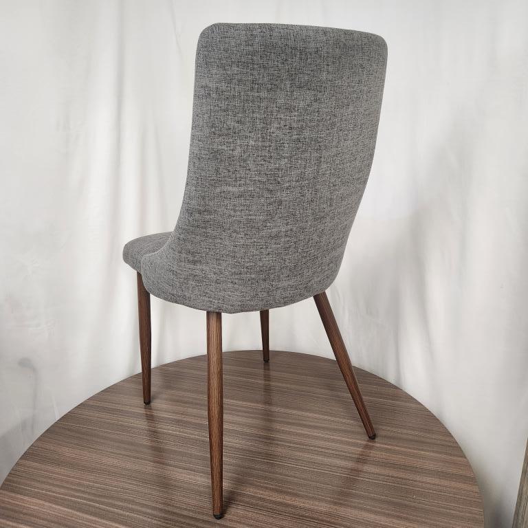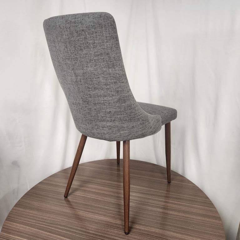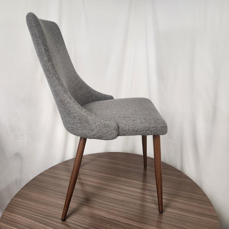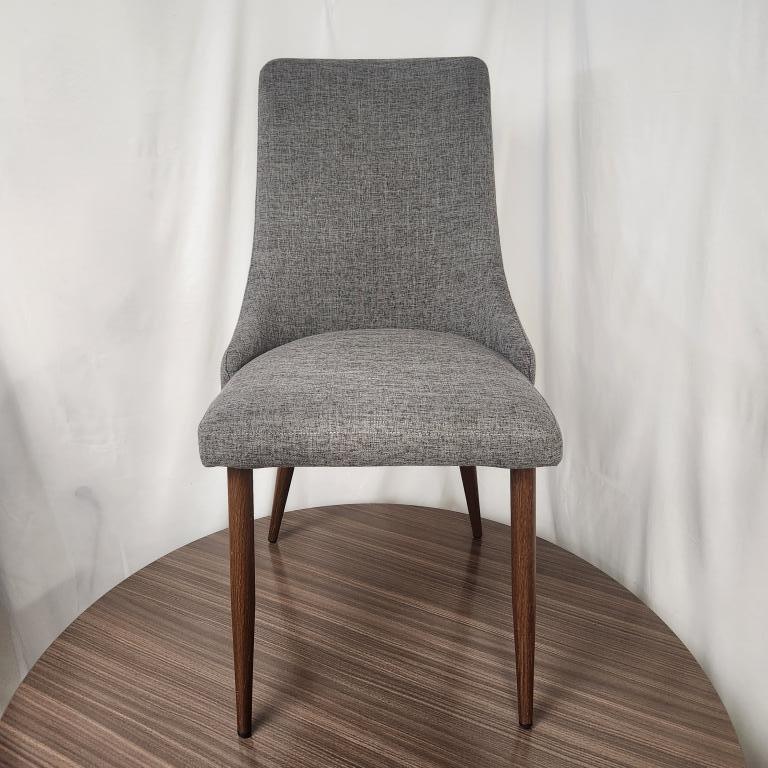 We have 2 of these Noble House grey fabric dining chairs with wooden legs that are perfect for a dining area or guest seating.