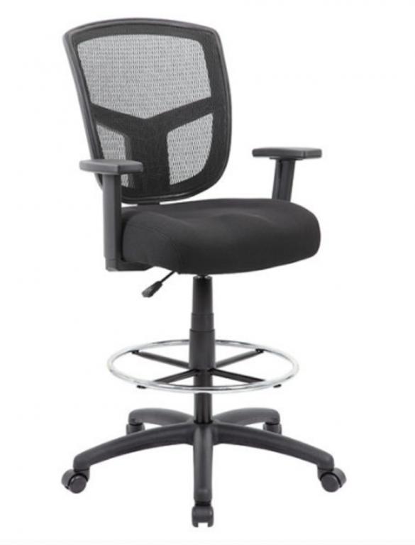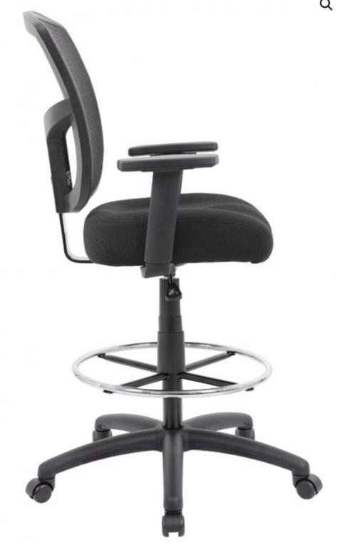 Description We have these contract drafting stool's which are a versatile & comfortable seating option for most any office or studio. The drafting stool provides a pneumatic gas lift mechanism for adjustable height options, making this great for a desk or drafting table. It comes in a sleek black color, has a mesh seat and mesh back and has a weight limit of 275 lbs. The stool also features adjustable arms for maximum comfort and a sturdy 27 inch nylon base with 2 inch nylon dual wheel castors for a smooth roll.
