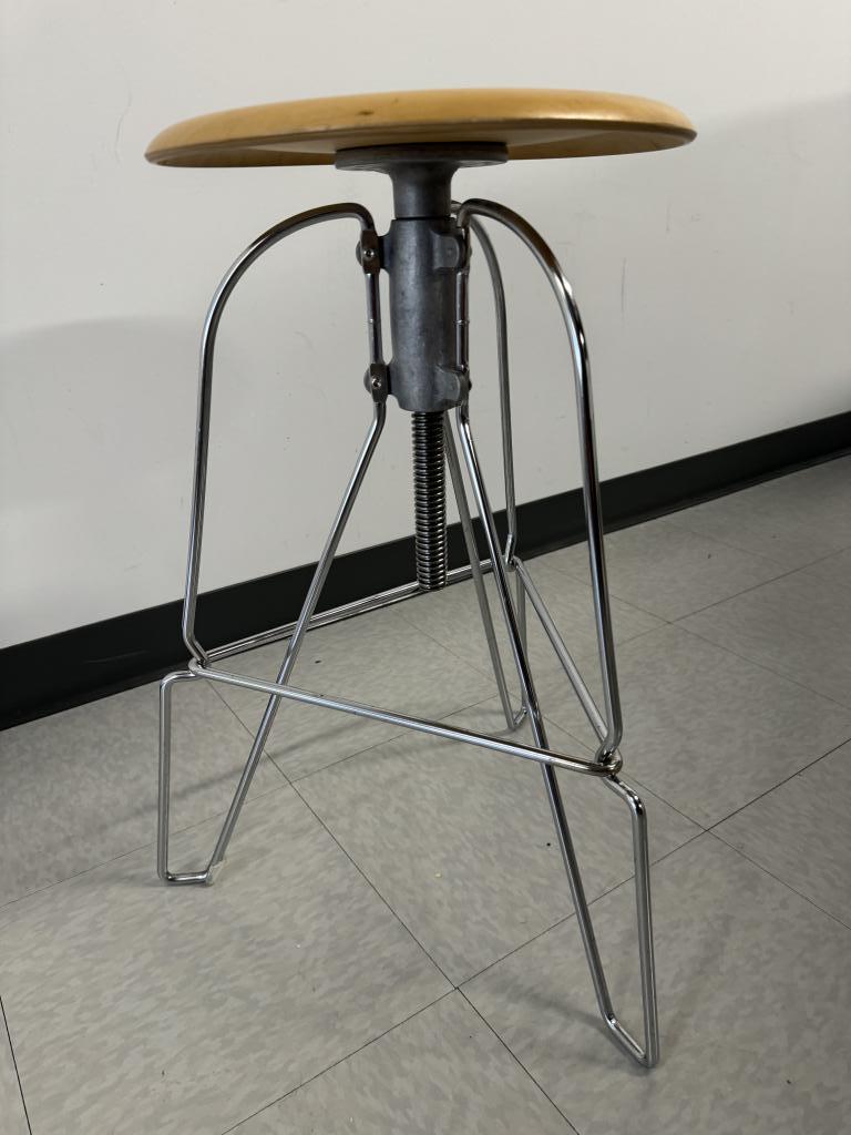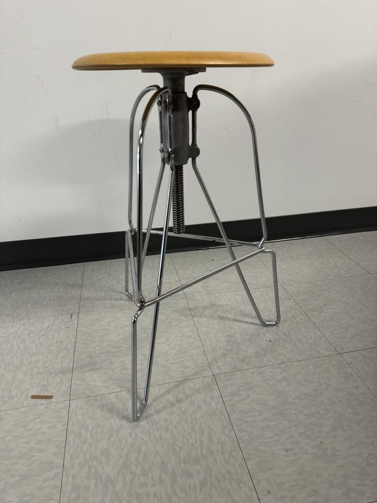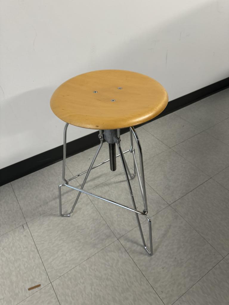 Jeff Covey stool wood seat and wire legs