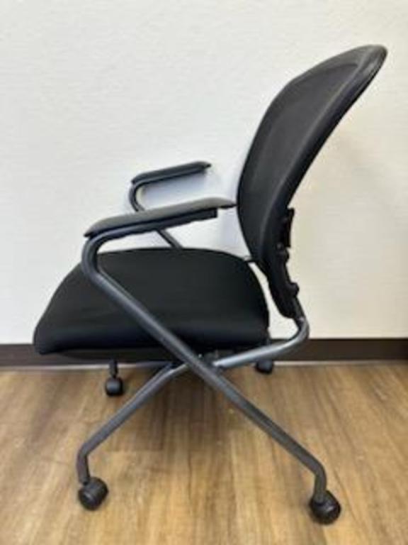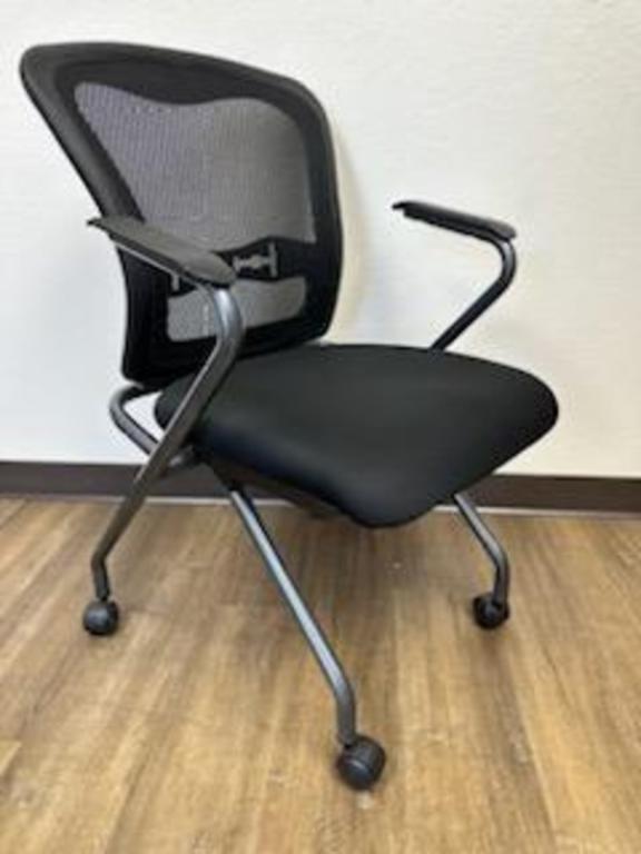 We have these 9 to 5 Black Mesh Nesting Chairs on Casters in excellent condition.
