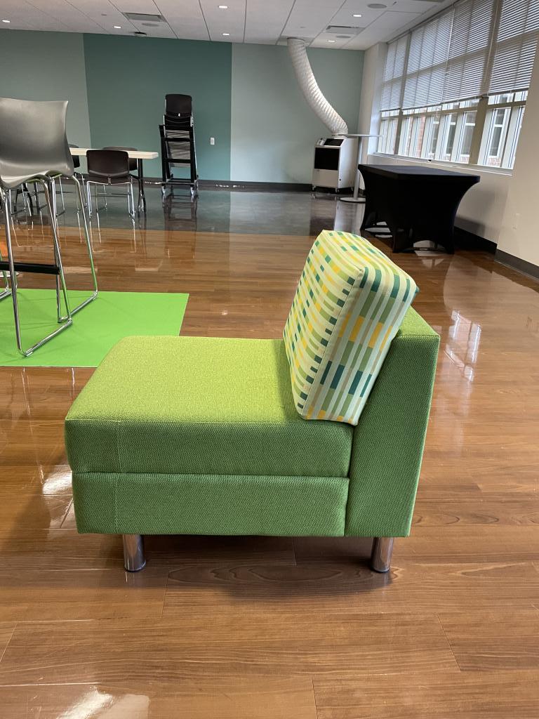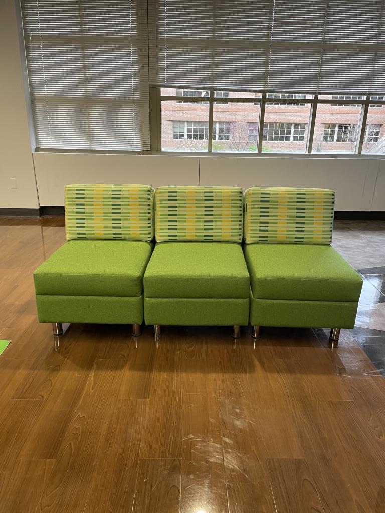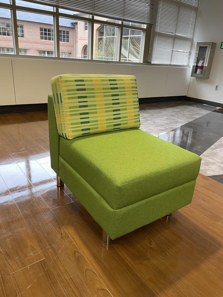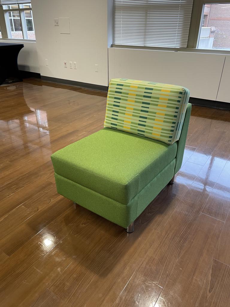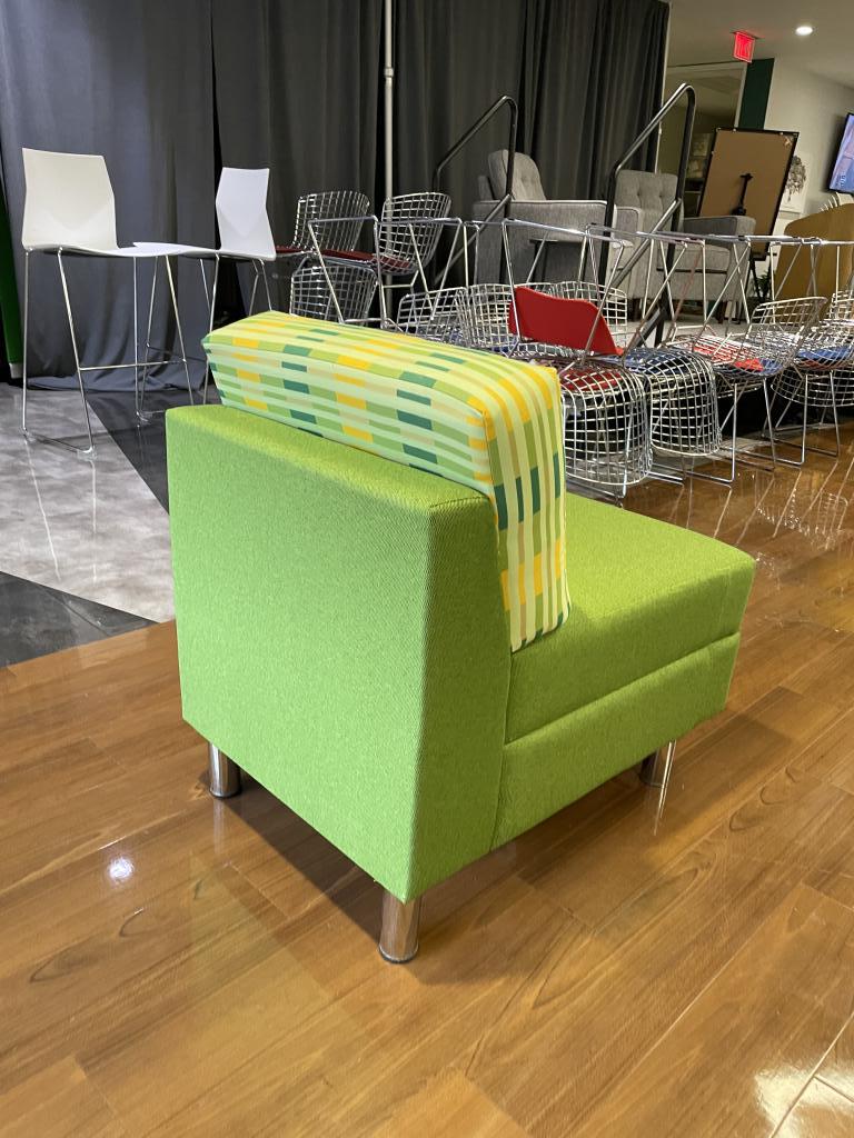 We have these green modular sofa lounge chairs. These are perfect for any lounge, lobby, or office space.