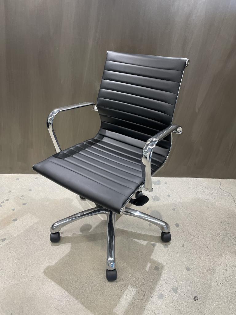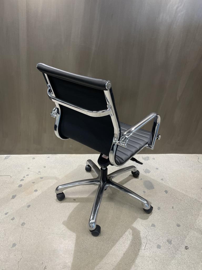 We have these black Herman Miller Eames inspired chairs. They have a chrome bar and ergonomic pneumatic cylinder.