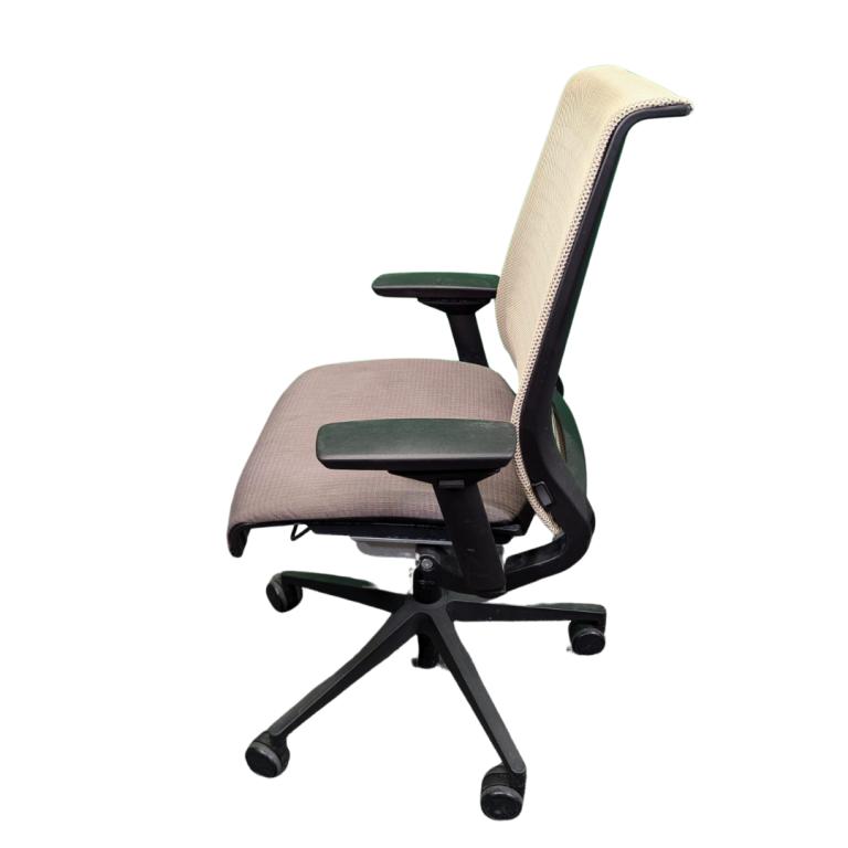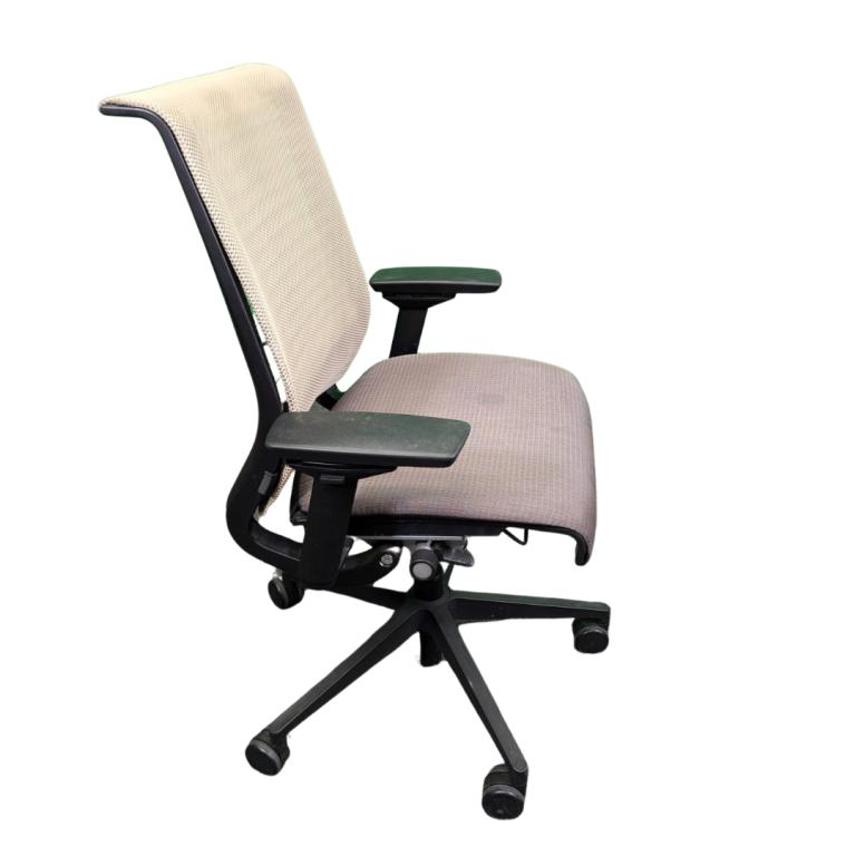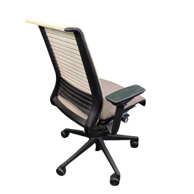 Description Enhance your workspace comfort with the Steelcase Think with a cream back and Tan seat. Designed for optimal support, this chair features an adjustable lumbar system that caters to your unique back support needs. The ergonomic design promotes proper posture, while the breathable mesh back and cushioned seat ensure all-day comfort. Perfect for long hours at the desk, this chair combines functionality with sleek style, making it an essential addition to any office.