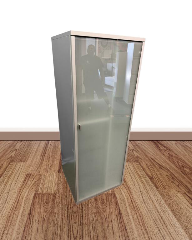 Description We have this Steelcase 2'x2'x65"tall wardrobe glass cabinet Featuring transparent glass doors that glide smoothly, this cabinet allows you to display and access your items with ease. Perfect for organizing your home or office, it combines style and functionality effortlessly.