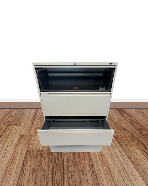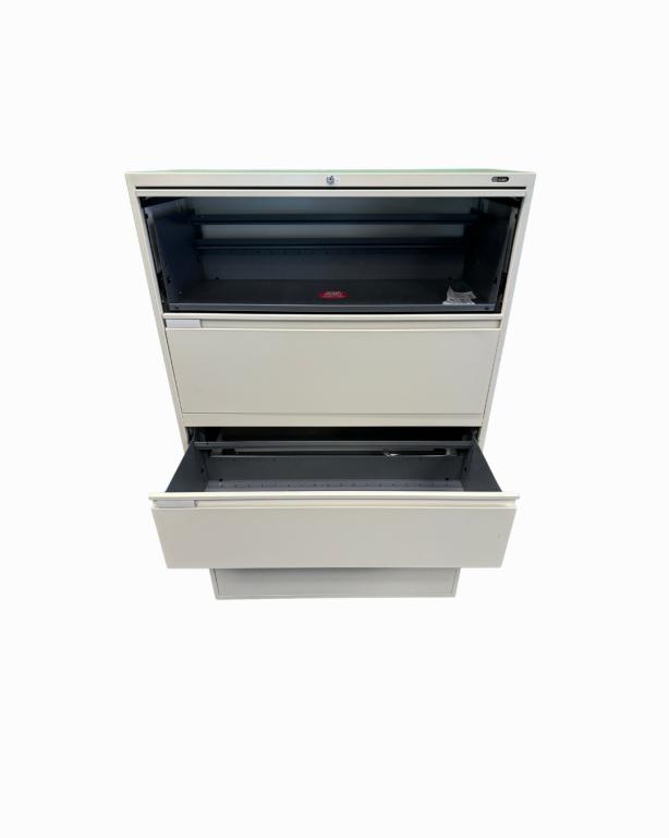 We have these Global 4 drawer 36" wide lateral file cabinets in good pre owned condition.