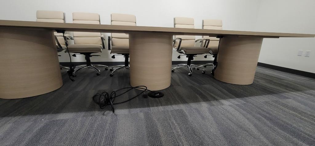 Description We have these Steelcase Payback refurbished like new Beigewoodn14x4ft 1.5in thick Boat Shape tables with cylinder bases the laminate is new in your choice from any WilsonArt thermosfused laminate. Get this quality refurbished table for a fraction of the price of buying it new. This table comes with two new power and usb grommets in the center as well.
