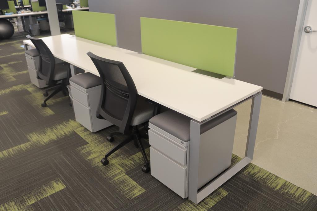 Description We have AMQ by Steelcase 6'x30" powered benching stations. Primarily these benching stations come back to back in cluster formation. Some single runs are available as well. These benching stations were hardly ever used as they are 3 years old and were hardly ever sat in.
