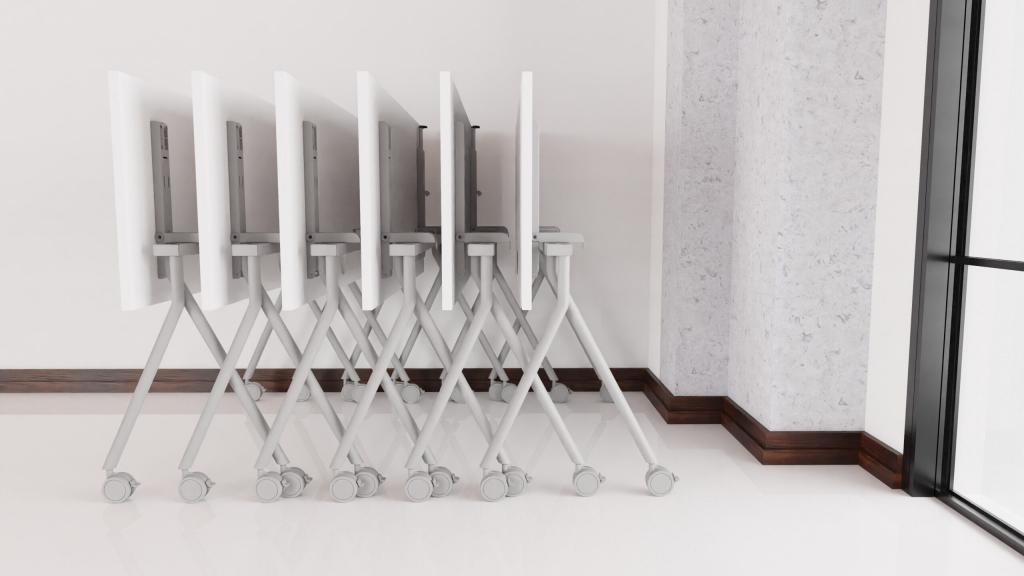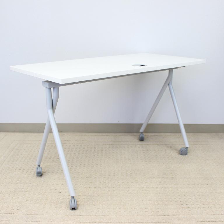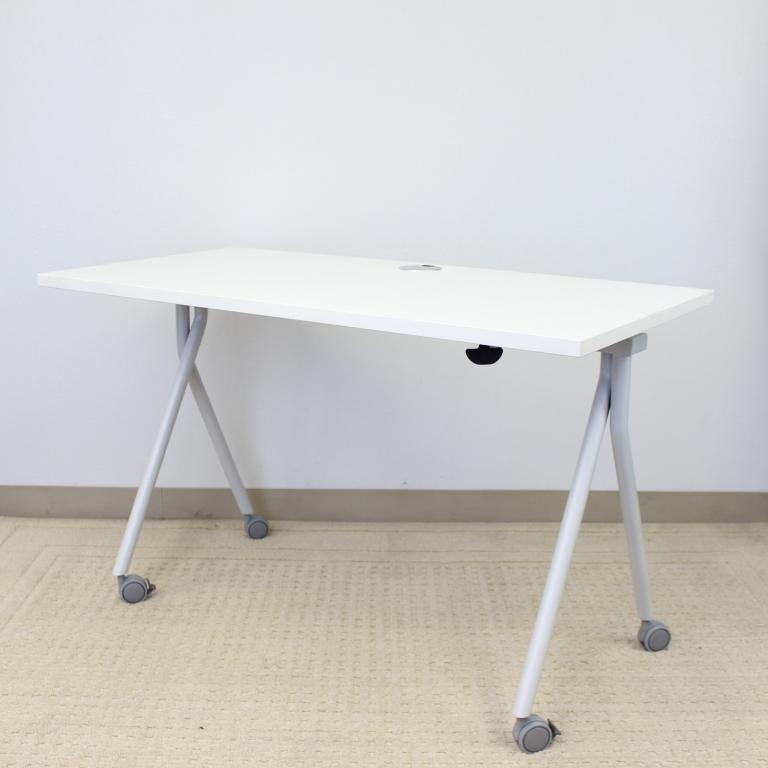 Description We have Maverick nesting tables that are on casters that are lockable. The table comes with a cable management tray and has a white 5'x2' surface. The base is new from Boss with warranty.