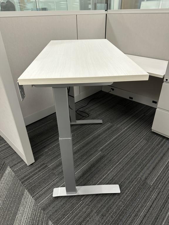 Description We have these 4'x24" or 46"x24" height adjustable tables in a modern blondewood finish that were never used.