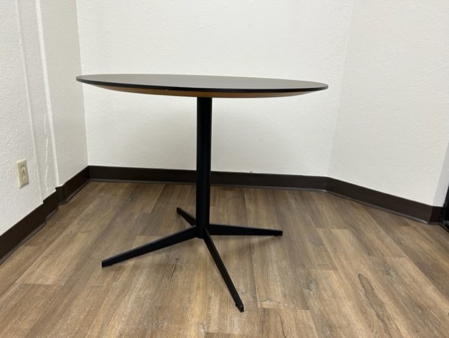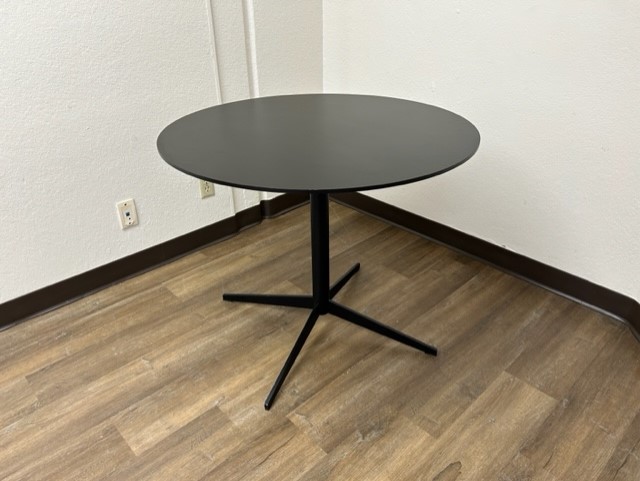 We have this Davis furniture black accent occasional table. This has a modern base to it and a sleek surface top.