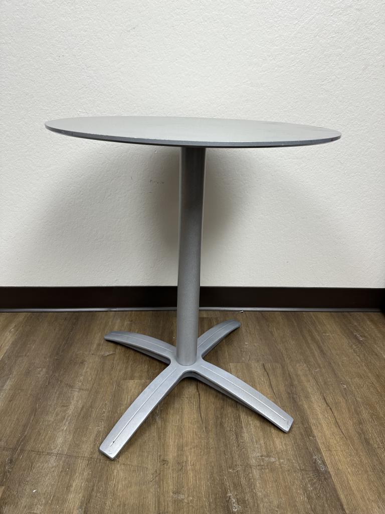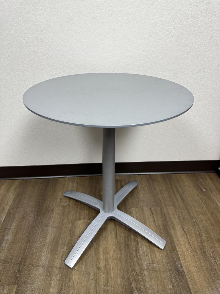 We have this Knoll Studio 30” round steel metal. Solid T base and refuel work or seated height.