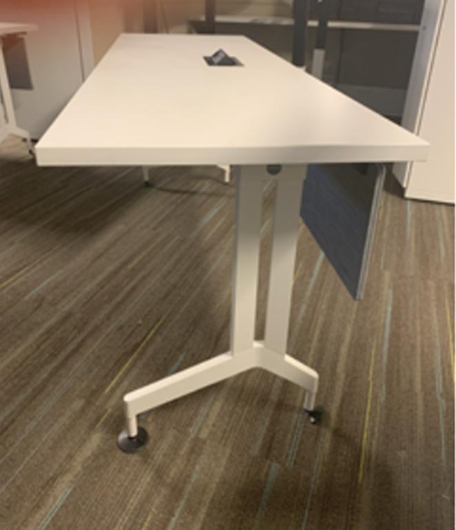 Description We have these Haworth White Nesting Powered Tables 6x2 feet in excellent like new condition. These tables are easy to fold and are a space save for any room. Combined 2 of these tables make a 6'x4' conference table and 4 of them make a 12'x4' conference table.