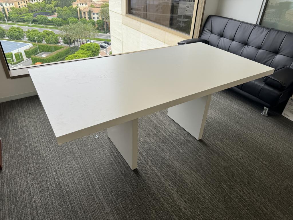 We have this 6’x3” white conference table perfect for any small size collaboration space. This table can also be used as an office desk.
