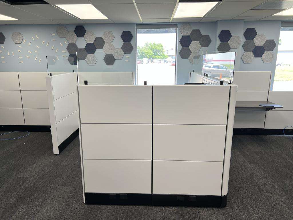 Description All tiles painted instead of upholstered. Looks fantastic in person. 7 different work surface colors available. This paint is bright white but we can do any color. Paint applied electrostatic process so very durable. Upmounted tempered glass is a nice add on. Our upmount glass attaches directly to panel frame so all glass is solid and stands up straight, not like the cheap clamps you see most using.