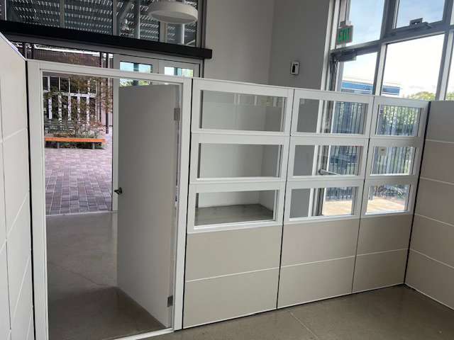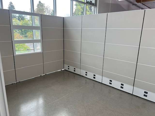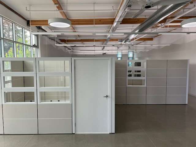 Description New AIS Matrix line workstations with doors and glass panel tiling around the top. Approximately 10x12 private offices constructed using matrix panel system to provide individual privacy at a lower cost. Can transform a space without the need for construction cost and delays. Available in all shapes, sizes, and finishes made to order to fit any needs. Reach out for any questions or inquiries regarding the product or its capabilities.