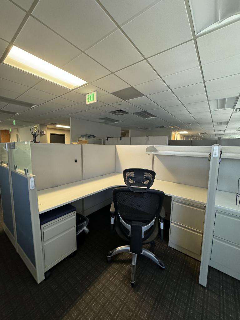 Description Mid height and modern. These stations provide privacy while still leaving the office open airy. Complete with frosted glass and ample storage. Along with the 6x6 stations we also have a hand full of telemarketing stations to match.