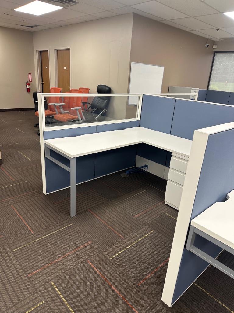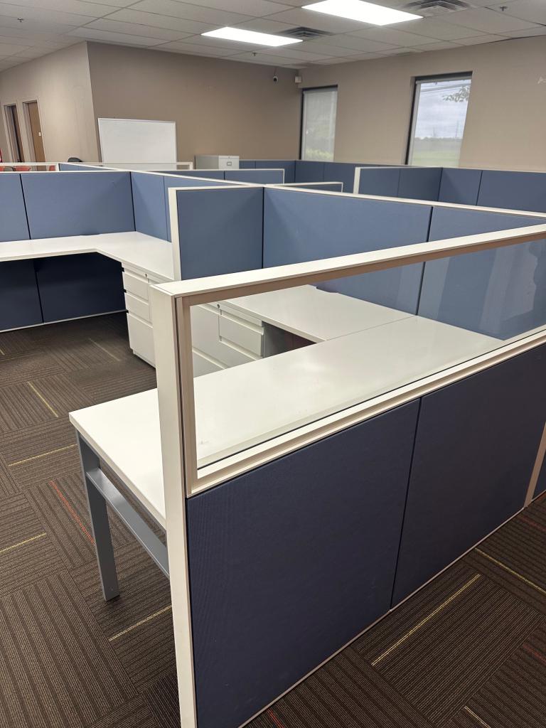 Description 5 1/2' x 6' Cubicles / Partions by Haworth Office Furniture Each Cubicle is 5 1/2' x 6' x 50" H Each Cubicle Includes a Combo Cabinet Please Check All Pictures For All Sizes Of The Cubicles 10 Available Minimum Order of 4 When Shipping Please Used Cubicles , Comes w normal wear and tear but in overall good working condition Please Contact About Local Delivery / installation Options