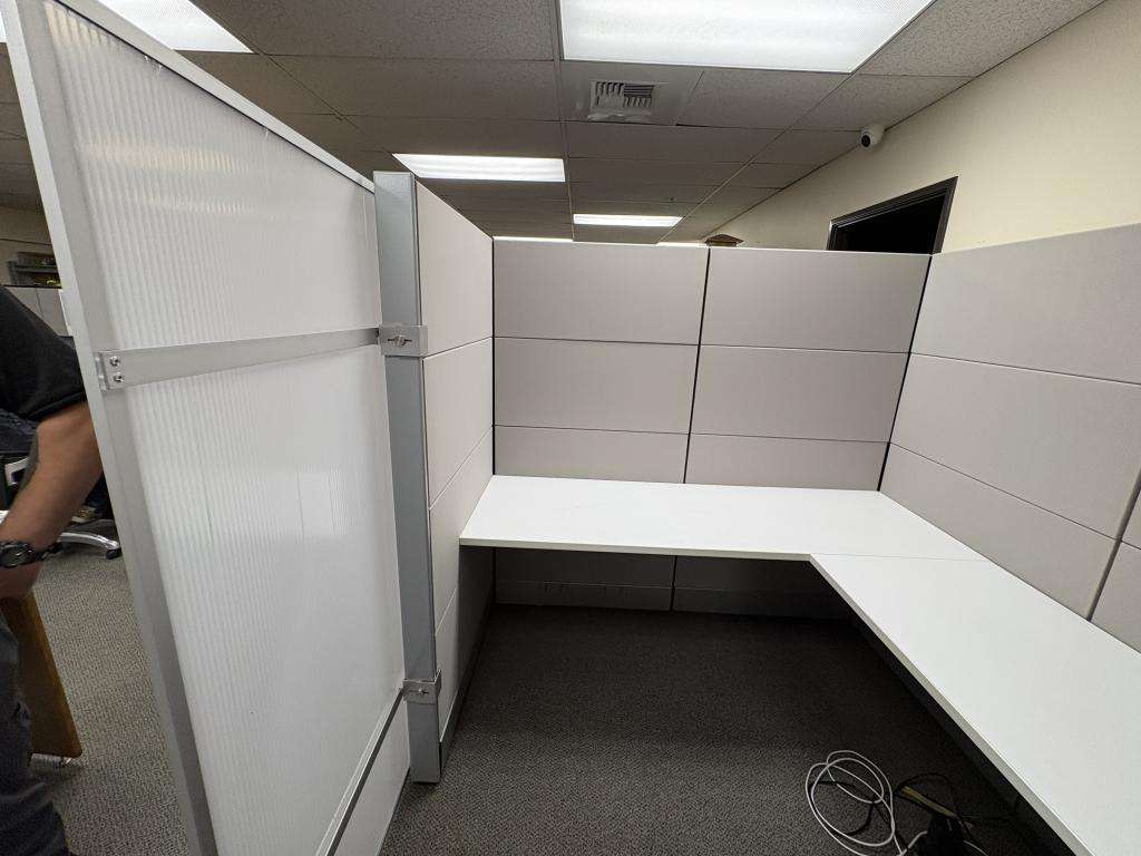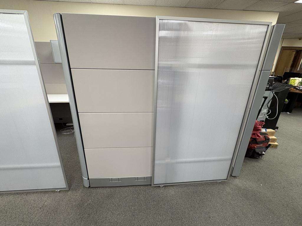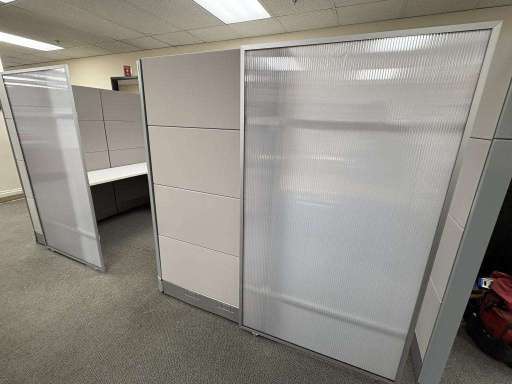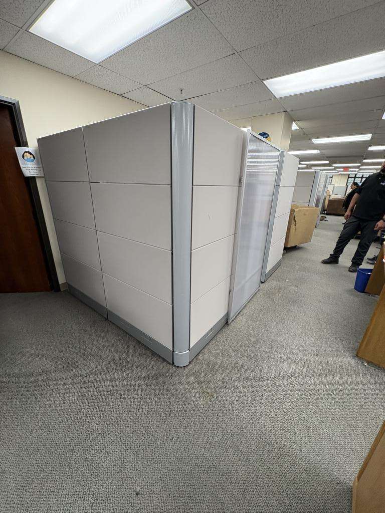 Description We have this Herman Miller Ethospace that is 70” tall with sliding doors. We can make any size out of these stations from 5’x5’ to 8’x8’ or larger. Please let us know what size stations you need and we will make them to meet your floor plan in any fabric or paint style in stock. Surfaces come included with these stations, overheads, pedestals and laterals additional based on design and style. $1198 cluster formation $1399 straight line formation.