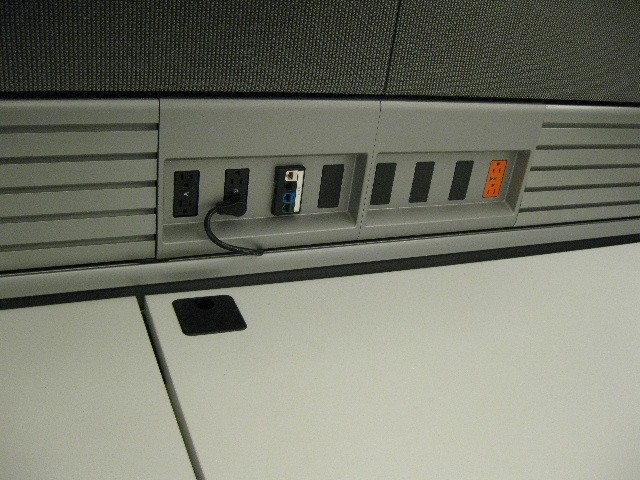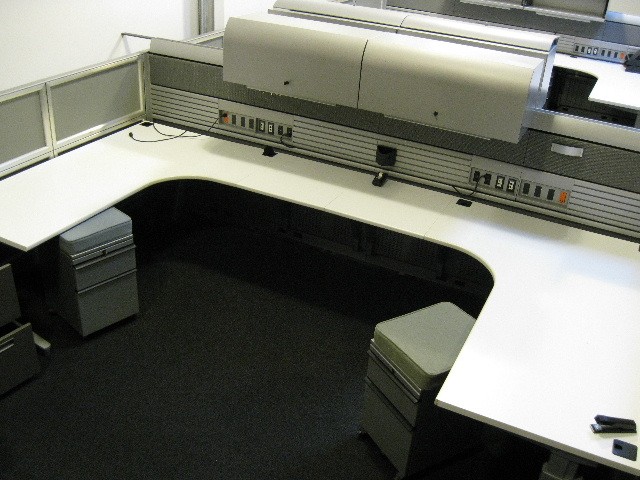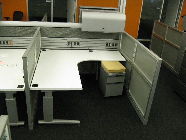 Description Knoll Current Used Work Stations: 6x6 all 53" high with a 36" Reuter Hydraulic Overhead that sits on top of the panel. Belt line power and data, mobile BF pedestal with a cushion. And, it gets better...adjustable height worksurfaces for a great ergonomic solution. This inventory is in immaculate condition with a "high tech" look.