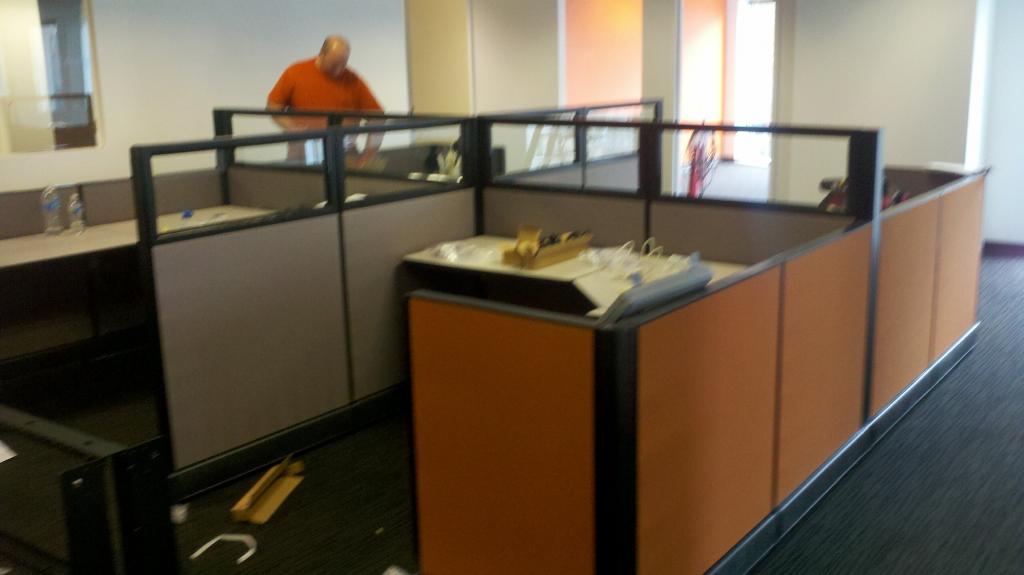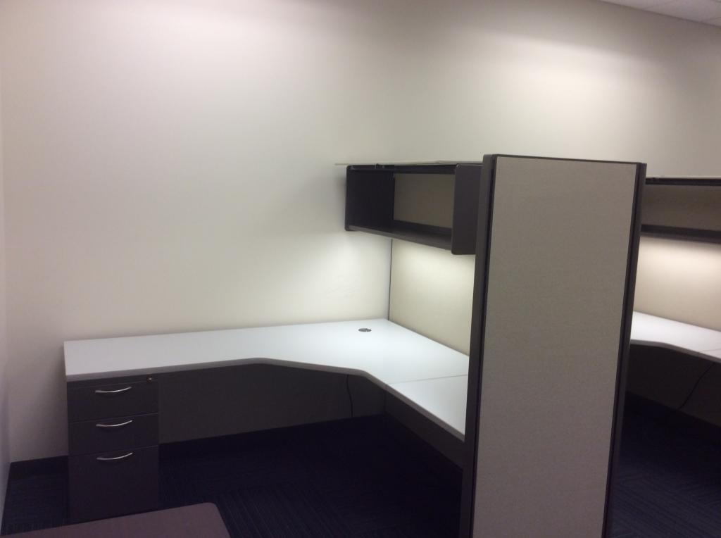 Description These Herman Miller 8 x 8 refurbished cubicles were installed for client wanting a tall spine with lots of storage. Collaboration was also important, so they selected some drop down panels for the sides. We refurbish in house and would like to discuss your office project.