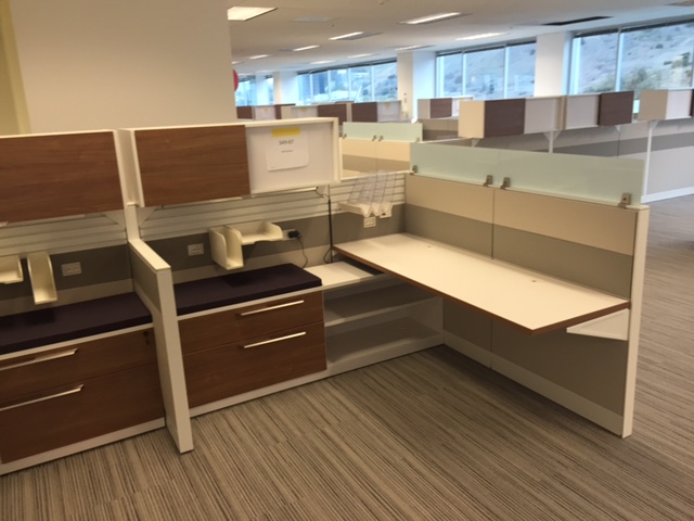 Description Our client wanted cubicles designed for a modern space so we designed the space using Friant Interra cubicles. Friant Office Furniture is an affordable option & we love being a Friant dealer. Pictured are a combination of 6 x 6 & 6 x 8 stations with cloud white worksurfaces with walnut accents. These stations feature power at the beltline, overhead bins that are a combination cabinet & whiteboard, lateral file with cushioned seat, rail tiles with paper management & frameless glass toppers making the overall height of the panels 53" for seated privacy.