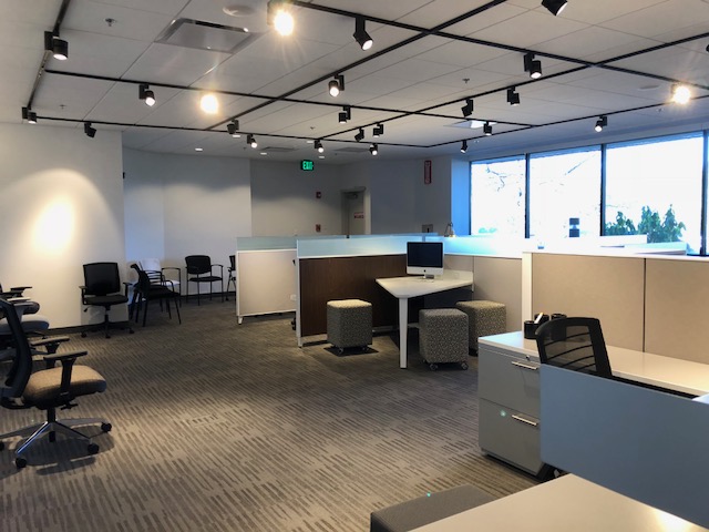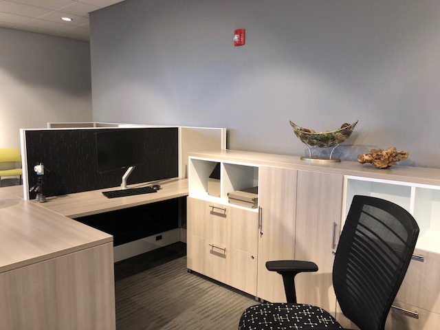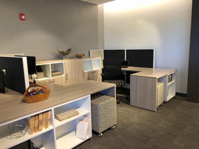 Description New modern collaborative workspaces spaces designed for the way we work today with employee huddle / lounge areas integrated with workspaces. These new desking stations come in a variety of sizes and your choice of modern finishes and laminate colors. Please give us a call to help design your office space.